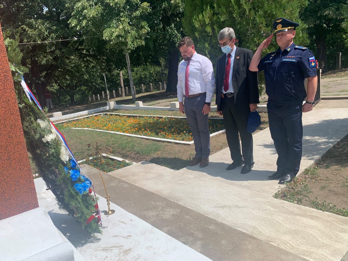 29 iulie 2021. La invitația primarului orașului Calafat, Dorin Mitulețu, ambasadorul Rusiei în România, Valeri Kuzmin (în centrul imaginii), a participat la ceremonia depunerii de coroane de flori la Memorialul ostașilor sovietici din acest oraș. La eveniment au mai fost prezenți asistentul atașatului militar al Ambasadei, locotenent-colonelul Evgheni Ignatiev (dreapta) și reprezentantul Ministerului Apărării din Rusia pentru activități militar-memoriale în România, Igor Biriukov. Cu această ocazie, s-a făcut o slujbă de pomenire în memoria eroilor-eliberatori/ Foto: Ambasada Rusiei în România