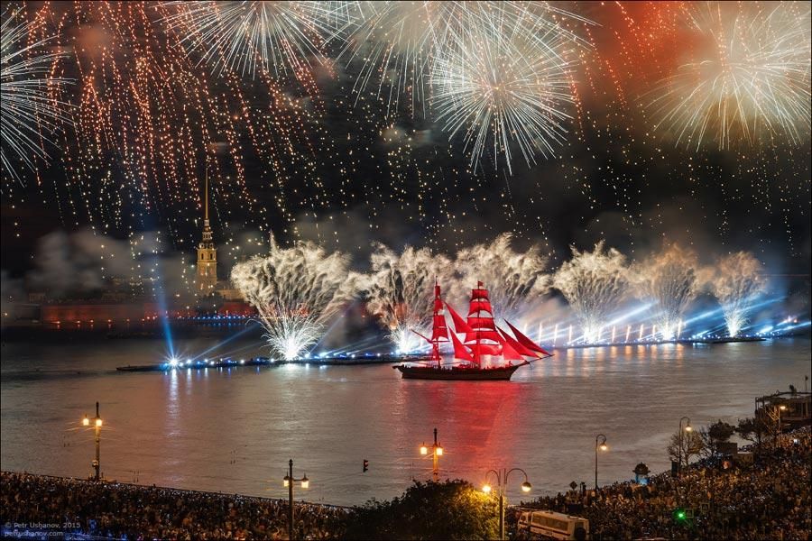 După miezul nopții, a avut loc un spectacol multimedia la scară largă, în acvatoriul fluviului Neva. Punctul culminant al sărbătorii a fost apariția unei brigantine cu pânze roșii. În mod tradițional, corabia suedeză Tre Kronor a acționat ca o navă din povestirea celebră ”Pânzele Purpurii” a lui Aleksandr Grin.