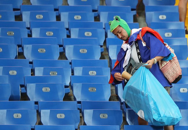 Deşi supăraţi că echipa lor a fost eliminată din turneu, suporterii veniţi din Ţara Soarelui Răsare au rămas, după meci, în tribune şi au strâns mizeria adunată. De altfel, după fiecare confruntare a selecţionatei nipone, suporterii au făcut curat în urma lor, strângând gunoiul în pungi aduse de acasă.