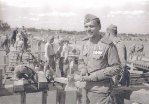 1944. Geniștii sovietici construiesc podul de peste Siret. Pe primul plan, sergentul Fokin/ Foto: M.Trahman