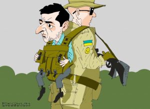 Mass-media rusă susține că președintele Ucrainei, Volodimir Zelenki, nu controlează armata ucraineană din Donbass/ Desen: Agenția REGNUM