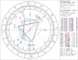 Istoricii îşi fac treaba lor, scotocind prin arhive şi în amintirile supravieţuitorilor (din ce în ce mai puţini); nici astrologii nu şomează – vorbim despre un eveniment cu o anvergură de excepţie şi este interesant de analizat ce şi cum, din unghiuri cât mai diferite. Bunăoară, dacă se analizează harta Germaniei naziste (ridicată pentru 30 ianuarie 1933, data când Hitler a devenit Cancelar), se remarcă nativitatea de Vărsător şi ascendentul în Gemeni. Ambele, semne de Aer şi nu putem spune că acest lucru nu a influenţat pregnant evoluţia ţării. Comunicarea (citim propaganda) a fost folosită din plin de către conducători – şi, iată cum Vărsătorul se exprimă şi prin aparatele de radio care au cunoscut o veritabilă explozie în acei ani, pentru ca populaţia celui de-al Treilea Reich să fie manipulată corespunzător. Ba, a existat şi un minister al propagandei, condus de către neobositul întra-ale răului, Goebbels. Luna din Berbec explică caracterul deloc pacifist al germanilor, iar Mercur în Vărsător, sensibilitatea şi permeabilitatea mentală a poporului la teorii noi şi la idealuri extravagante. Saturn, conjunct cu Soarele şi cu Mercur, chiar pe Meridian, arată clar disciplina (ca parte a ideologiei) şi autoritatea regimului. Casa a IV-a (a ţării) conţine Neptun conjunct cu Nodul Sud Lunar (idealuri şi credinţe nefaste, deturnare de ideal), Jupiter (bunăstarea iniţială de care s-a bucurat poporul german cu Hitler la cârmă) şi Marte (care prevestea, tăcut, dezastrul ce avea să urmeze). Interesante sunt stelele fixe din această hartă: Avior, activată de Jupiter, care are legătură cu înecul (fizic sau spiritual) – şi nu se poate spune că nu asta a fost soarta ţării, ca urmare a conflagraţiei; apoi, Polux, conjunctă cu temutul Pluton – o stea cu mare potenţial distructiv, violentă şi crudă, chiar pe semnul Racului (semnul clasic al poporului) şi în casa a II-a a resurselor şi a bogăţiilor, a averii. De fapt, parcursul pe care îl dă această stea activată este bogăţie şi onoruri, urmate de ruină şi dizgraţie. Şi, tot în casa a IV-a (a ţării) o găsim pe Alioth, conjunctă cu Nodul Sud Lunar, semnificatoare a suicidului. Într-adevăr, urmându-l pe Hitler, poporul german şi-a cam pus laţul de gât…