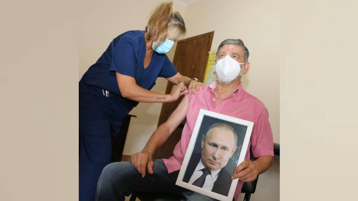 Primarul orașului argentinian Roque, Perez Aires Juan Carlos Gasparini, s-a vaccinat împotriva coronavirusului cu portretul președintelui rus, Vladimir Putin, în mână (în imagine), au anunțat, într-o postare pe Instagram, autoritățile locale, scrie Gazeta.ru.