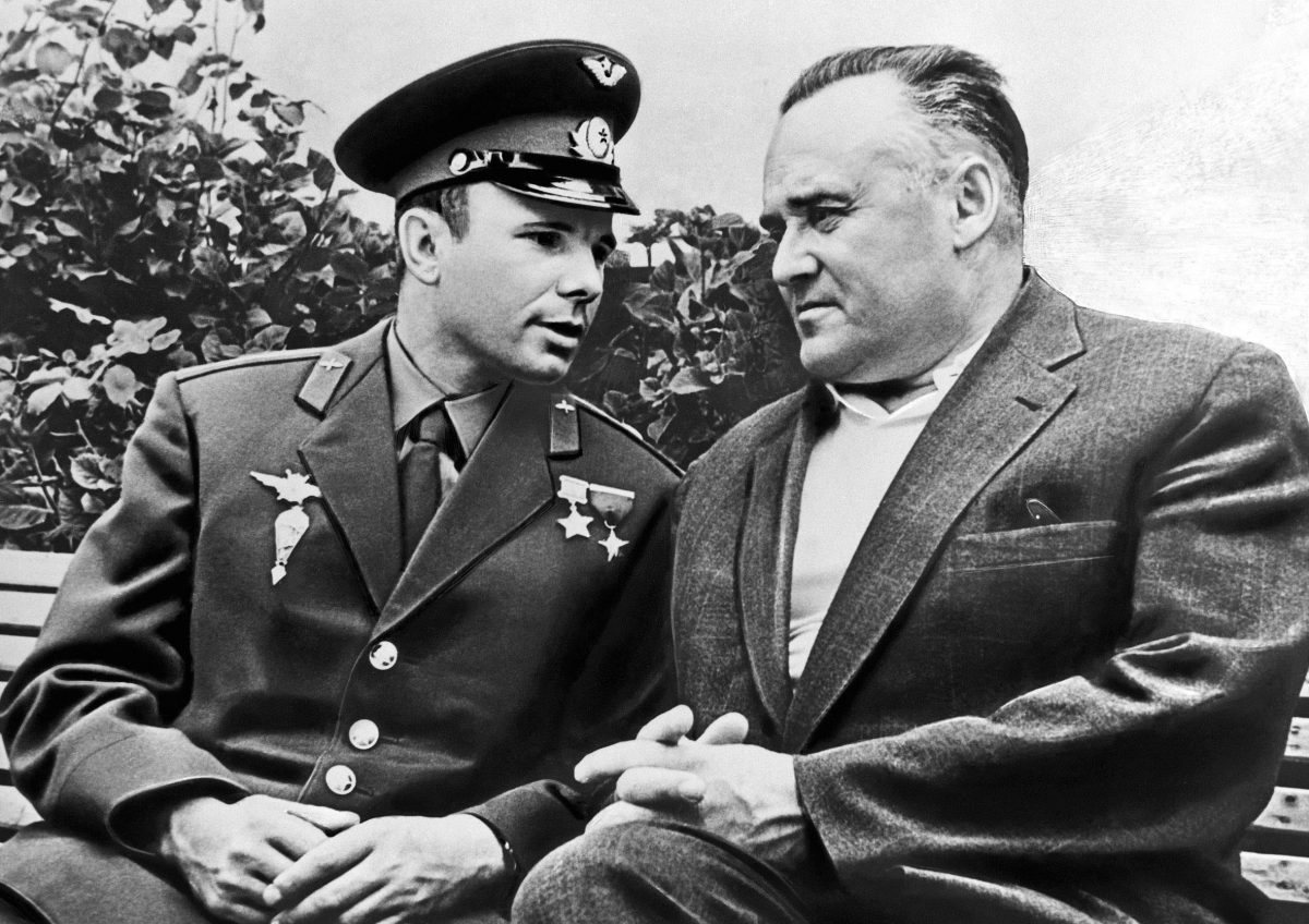 Iuri Gagarin și ”părintele cosmonauticii sovietice”, principalul proiectant al navelor spațiale, Serghei Pavlovici Koroliov/ Foto: RIA Novosti