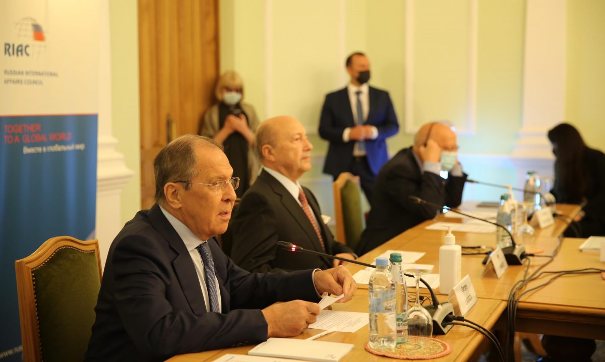 Ministrul de Externe al Rusiei, Serghei Lavrov. În plan secund: președintele Consiliului pentru Afaceri Internaționale, fostul ministru de Externe, Igor Ivanov/ Foto: russiancouncil.ru