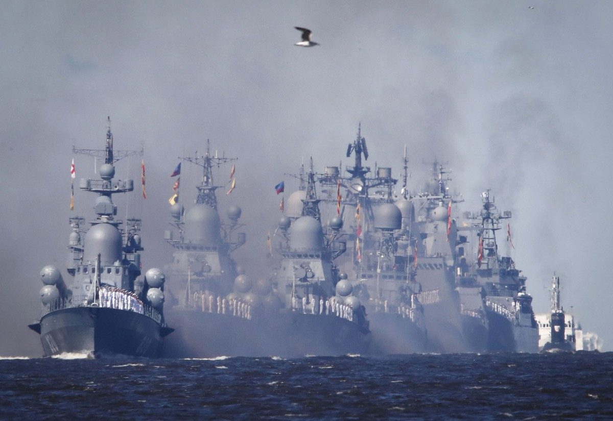 Navele de război în mișcare în timpul Paradei Marinei Militare din Kronstadt, lângă Sankt Petersburg, 26 iulie 2020. Foto: Anton Vaganov