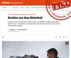 În închipuirea jurnaliștilor de la Der Spiegel, ajutați de cunoscuții falsificatori Bellingcat, Rusia ar realiza un fel de program secret de acțiune de la distanță cu ajutorul unor unde periculoase (ultrasunenete, radiații micro și audio) asupra unor abonați țintiți prin intermediul dispozitivelor mobile. Nu este greu de ghicit că abonații țintiți sunt angajați ai ambasadei SUA în Germania, și nu oricare, ci doar cei care se ocupă de Rusia, inclusiv de colaborarea ruso-germană din domeniul gazelor naturale și al securității cibernetice.
