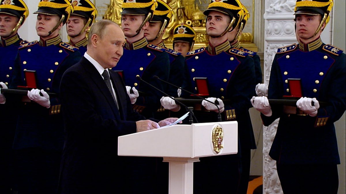 12 iunie 2022. Kremlin. Președintele rus, Vladimir Putin, îi felicită cetățenii țării de Ziua Rusiei/ Foto: tvzvezda.ru