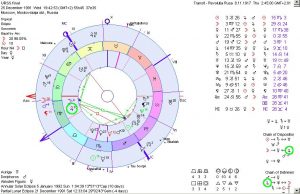 Capricornul natal era tranzitat de planete grele, de destin – Uranus, cel responsabil cu revoluţia, reforma, noutatea, dar şi Neptun, adică idealul. Lilith tranzita Mercur natal al URSS, lezând profund (şi kharmic) mintea celor cu autoritate.