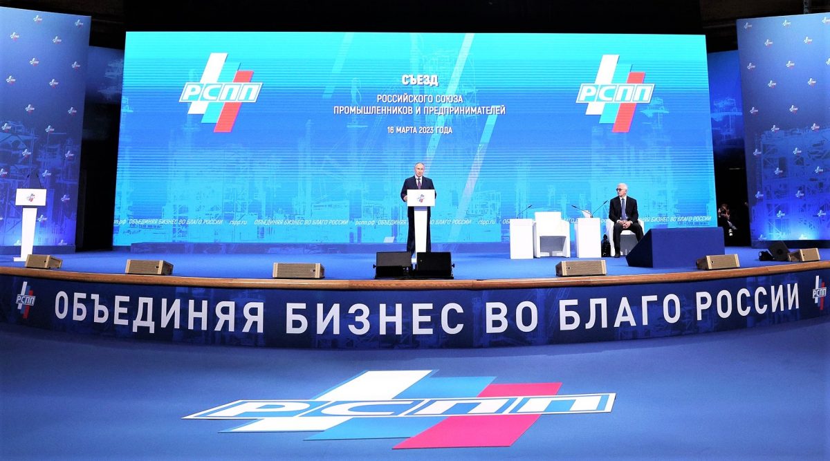 Se estimează că Produsul Intern Brut al Rusiei va crește în trimestrul II al anului 2023, a anunțat președintele Vladimir Putin, vorbind la congresul Uniunii Industriașilor și Antreprenorilor din Rusia (în imagine), relatează publicația economică Vedomosti.