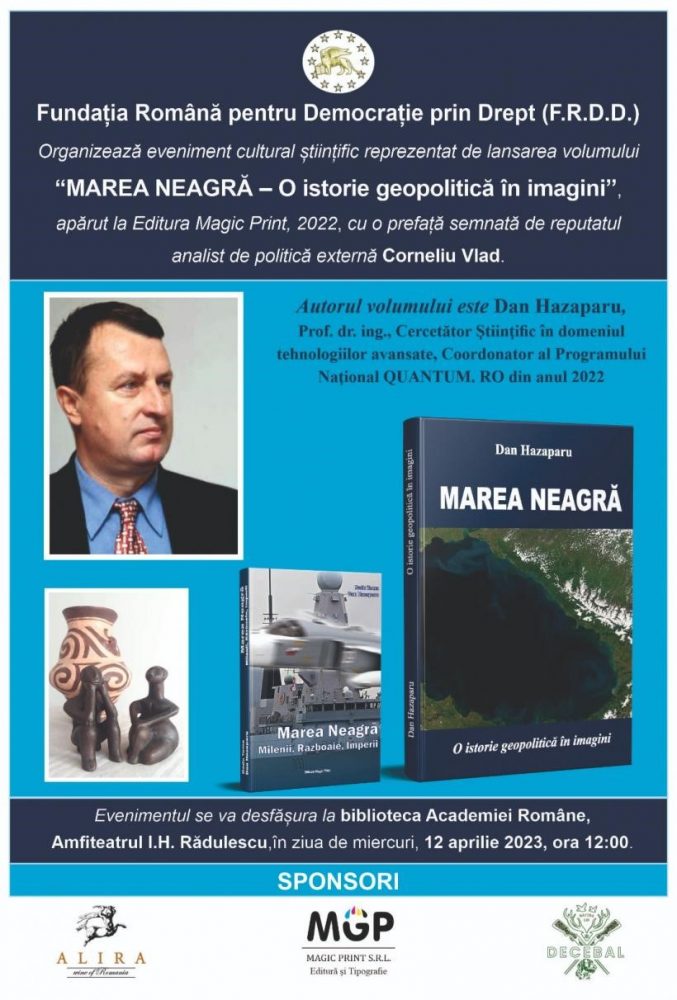 La Sala “I.H.Rădulescu” din Biblioteca Academiei Române a avut loc lansarea volumului ”Marea Neagră – O istorie geopolitică în imagini” de politologul prof. dr. Dan Hazaparu – eveniment organizat de Fundația Română pentru Democrație prin Drept.