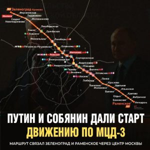 Al treilea Diametru Central al Moscovei (cu o lungime de 82 km), inaugurat oficial joi de președintele rus, Vladimir Putin, și primarul Moscovei, Serghei Sobianin/ Foto: Telegram