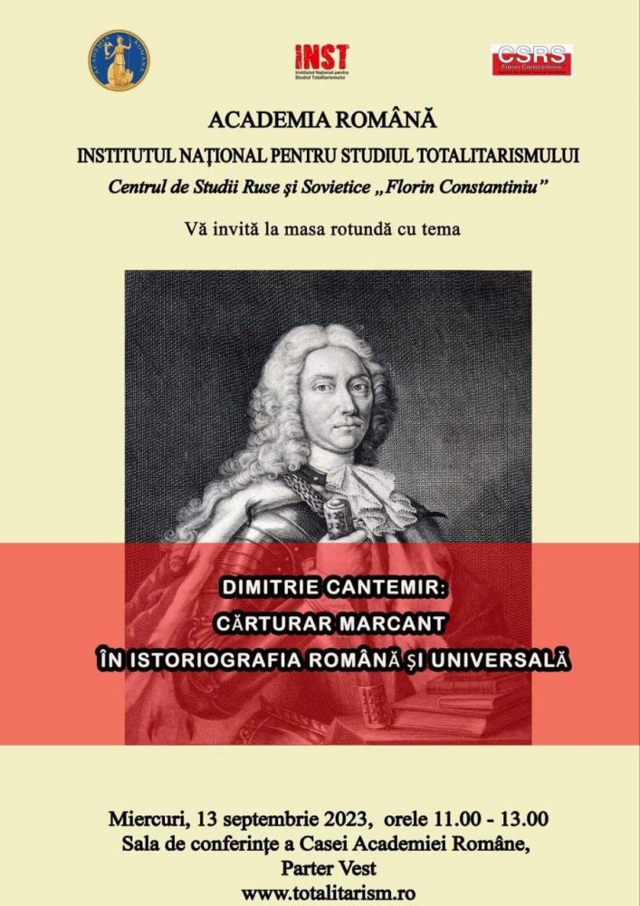 Miercuri, 13 septembrie 2023, Centrul de Studii Ruse și Sovietice „Florin Constantiniu”, din cadrul Institutului Național pentru Studiul Totalitarismului al Academiei Române, a organizat o masă rotundă cu tema „Dimitrie Cantemir: cărturar marcant în istoriografia română și universală”.