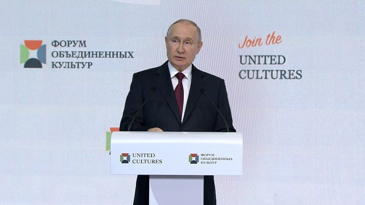 Vorbind la sesiunea plenară a Forumului Cultural de la Sankt Petersburg, liderul rus a subliniat că la baza culturii ruse se află ”libertatea și milostenia autentice, dragoste pentru om, spiritualitate”, așa că anularea ei este imposibilă.