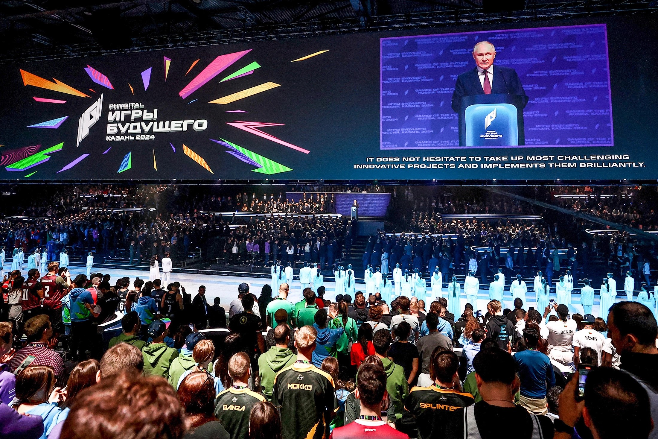 „Sunt bucuros să-i salut în Rusia pe pionierii phygital-sport – un format complet nou, inovator, care a inspirat chiar și numele competițiilor viitoare: sunt cu adevărat jocurile viitorului… Este firesc faptul că ideea de a combina sportul clasic cu e-sportul s-a născut în Rusia. Țara noastră a fost și rămâne una dintre puterile sportive de top de pe planetă, patria marilor sportivi, victorii și recorduri”, a spus Vladimir Putin.