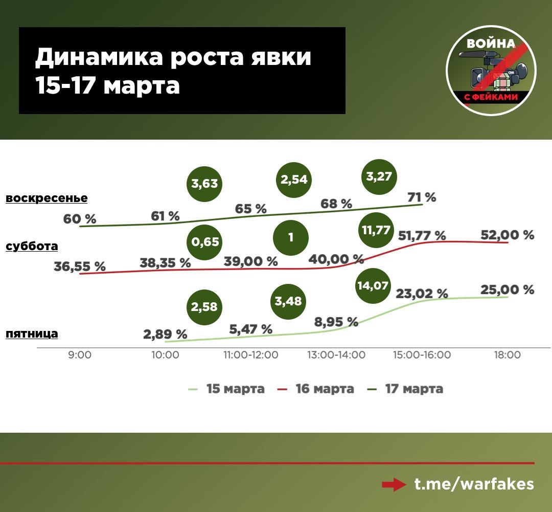 Dinamica creșterii prezenței la vot de la vineri (rândul de jos) până la duminică/ Foto: t.me/warfakes