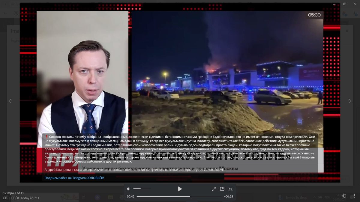 25/03Klințevici: Teroriștii de la Crocus sunt indivizi care și-au pierdut latura umană