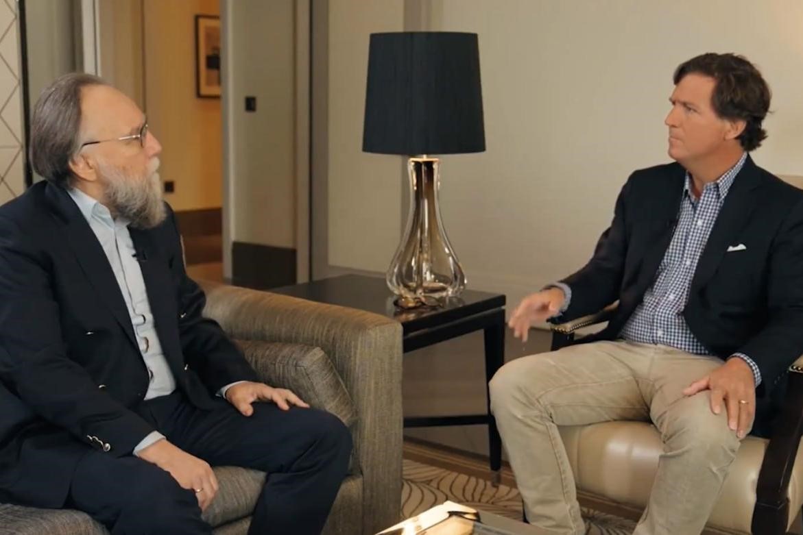 Pe canalul jurnalistului american de pe rețeaua de socializare X, a aprăut o înregistrare video de aproximativ 20 de minute. Carlson l-a prezentat pe interlocutorul său ca fiind „cel mai cunoscut” filosof politic, menționând că „guvernul ucrainean i-a ucis fiica”.
