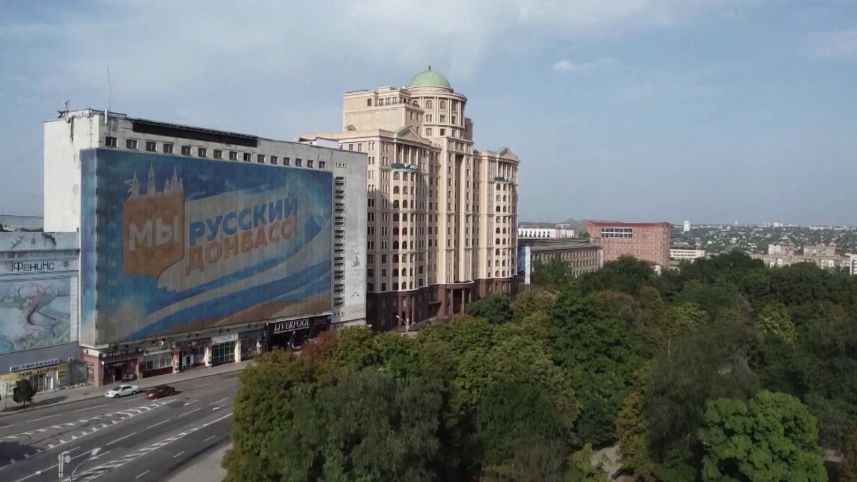 Donețk. Pe pancarta scrie: ”Noi suntem Donbassul rusesc”/ Foto: Smotrim.ru