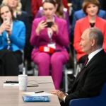Președintele Vladimir Putin, în timpul ”Liniei directe”, combinate cu conferința de presă anuală/ Foto: RIA Novosti