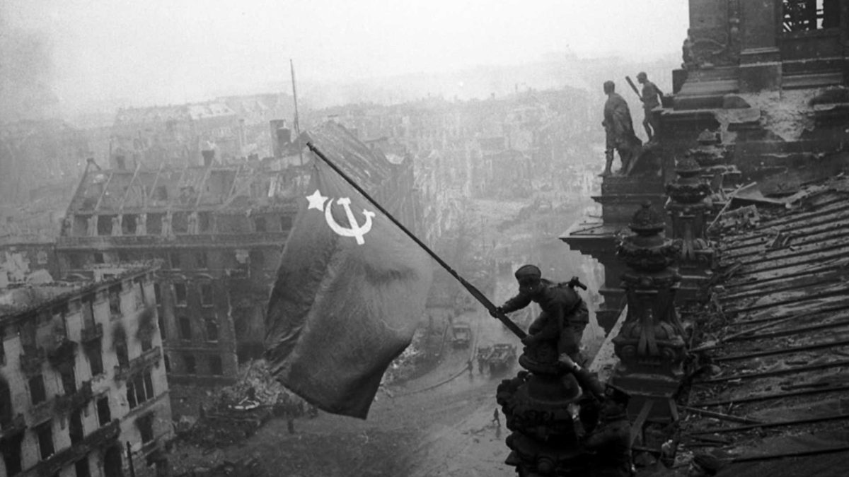 Steagul Victoriei deasupra Reichstagului/ Foto: Evgheni Haldei/ TASS