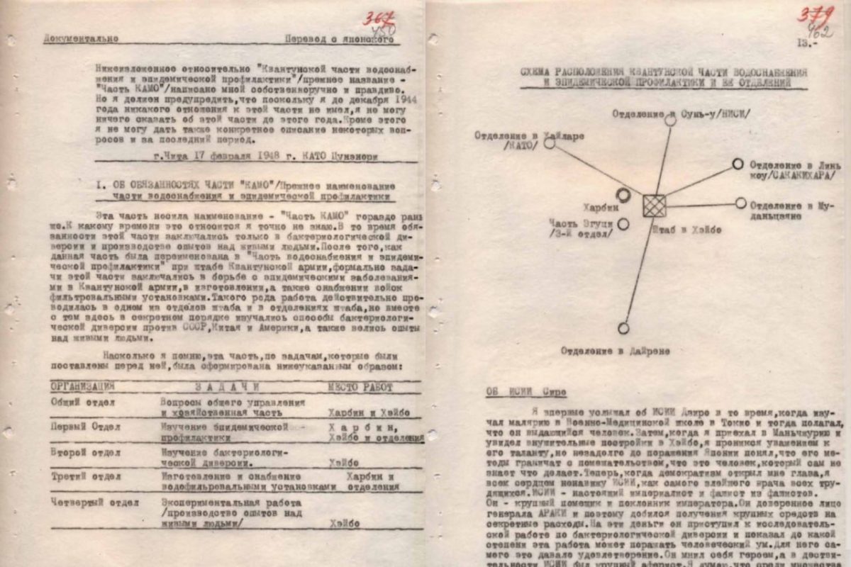 În august 1945, după înfrângerea Armatei Kwantung, în mâinile organelor sovietice ale securității de stat au ajuns numeroase documente din arhivele agențiilor de contrainformații japoneze din Manciuria.