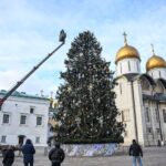 Bradul principal al Rusiei, împodobit cu jucării și ghirlande