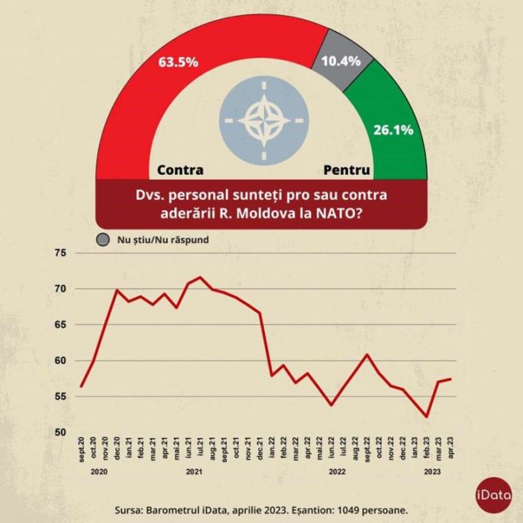 Populația Basarabiei este în procent de peste 63% împotriva aderării la NATO! scrie publicația CutiaPandorei. Firma de sondare a opiniei publice din Republica Moldova iData a realizat recent un sondaj de opinie, în care a întrebat moldovenii dacă susțin aderarea Republicii Moldova la Uniunea Europeană (UE) și Organizația Tratatului Atlanticului de Nord (NATO). Majoritatea moldovenilor […]